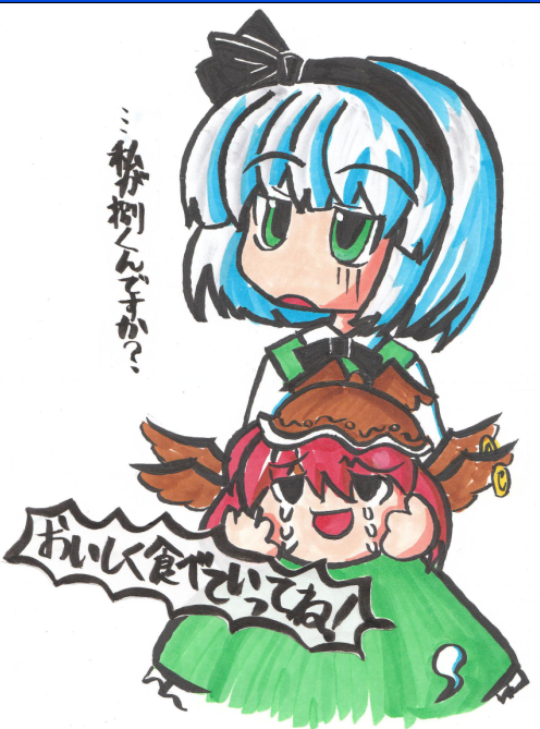 今回の本ではマリサ出す予定だったんですけど残念なことにネタが出なくて出せなくなったんで原稿すっぽかして描いちゃったんだZE☆